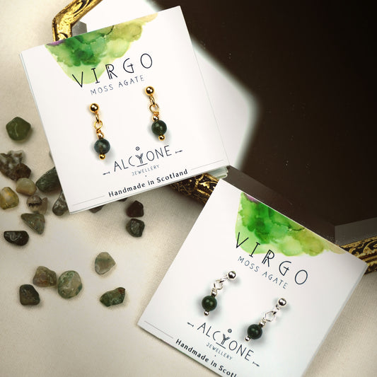 Tiny Moss Agate Earrings | Dainty Crystal for Balance and New Beginnings