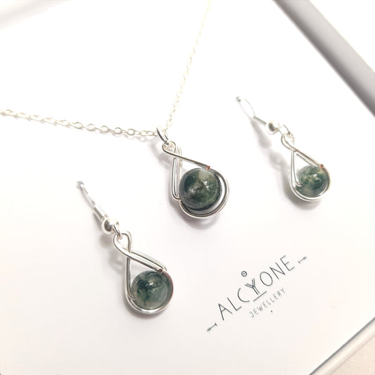 Moss Agate Gift Set | VIRGO Birthstone Jewelry | Crystal of Balance and New Beginnings