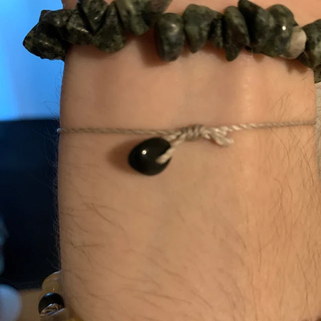 Bracelet hasn’t left my wrist since I got it! I love how light it feels on my wrist. It goes with everything and has great energy. Helps me feel grounded when feeling anxious.
