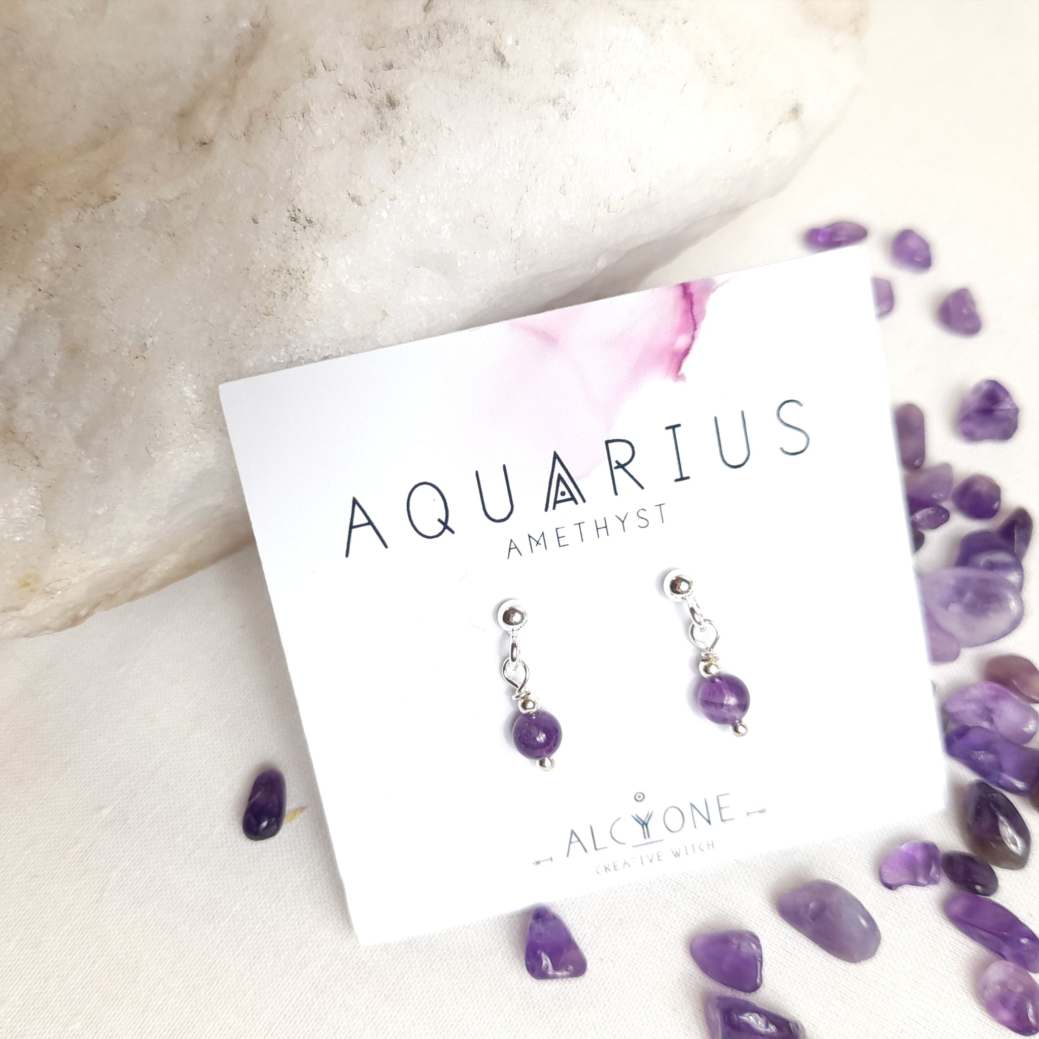 Tiny and Oh-So-Cute AMETHYST EARRINGS - gemstone for Intuition, Spirituality and Third Eye Opening.
