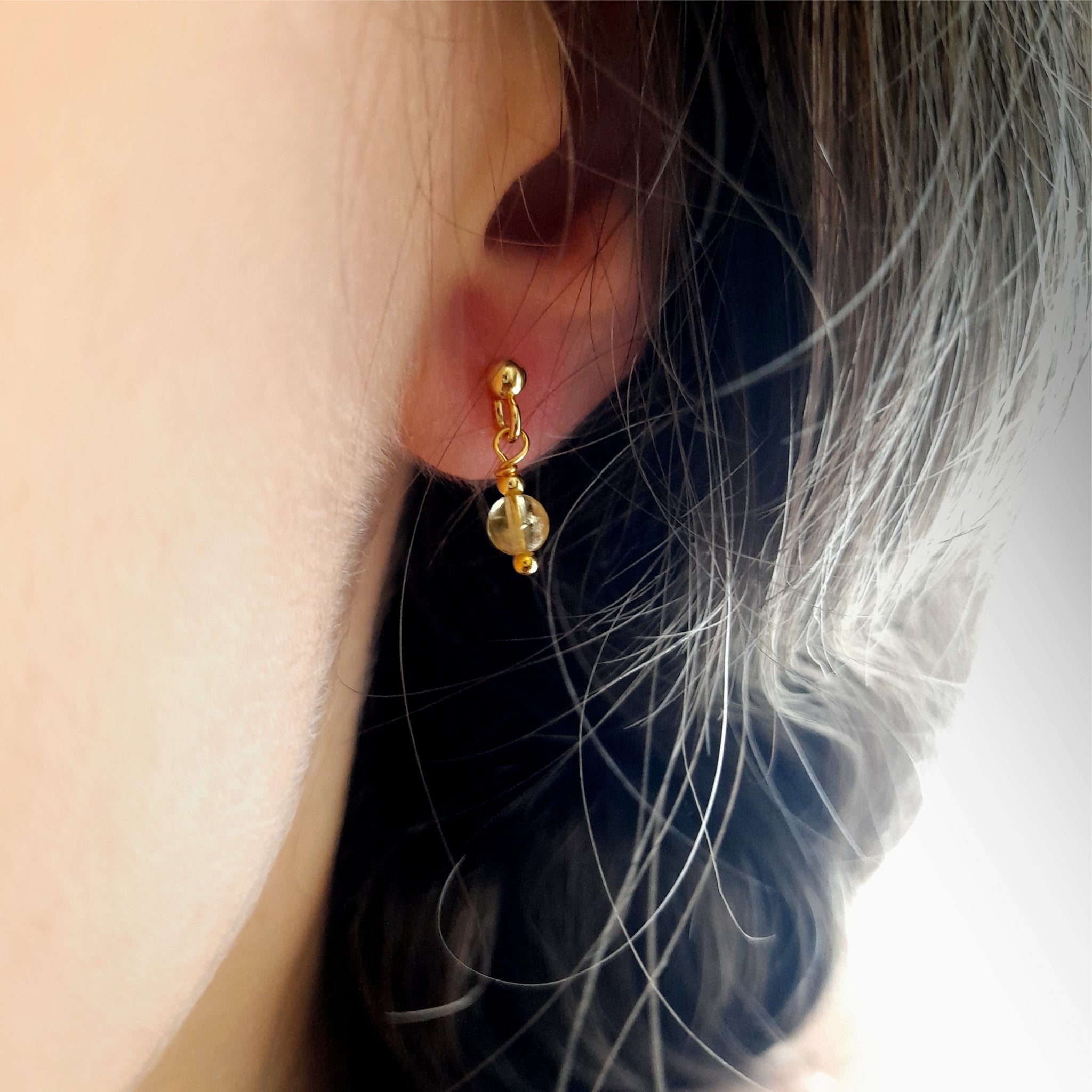 - These are very small earrings. Gemstone bead size is 3,5 to 4mm, with a total earring lenght around 16mm. Perfect for those, who like their jewelry subtle and dainty. ***Please be aware that they may look bigger in the pictures***