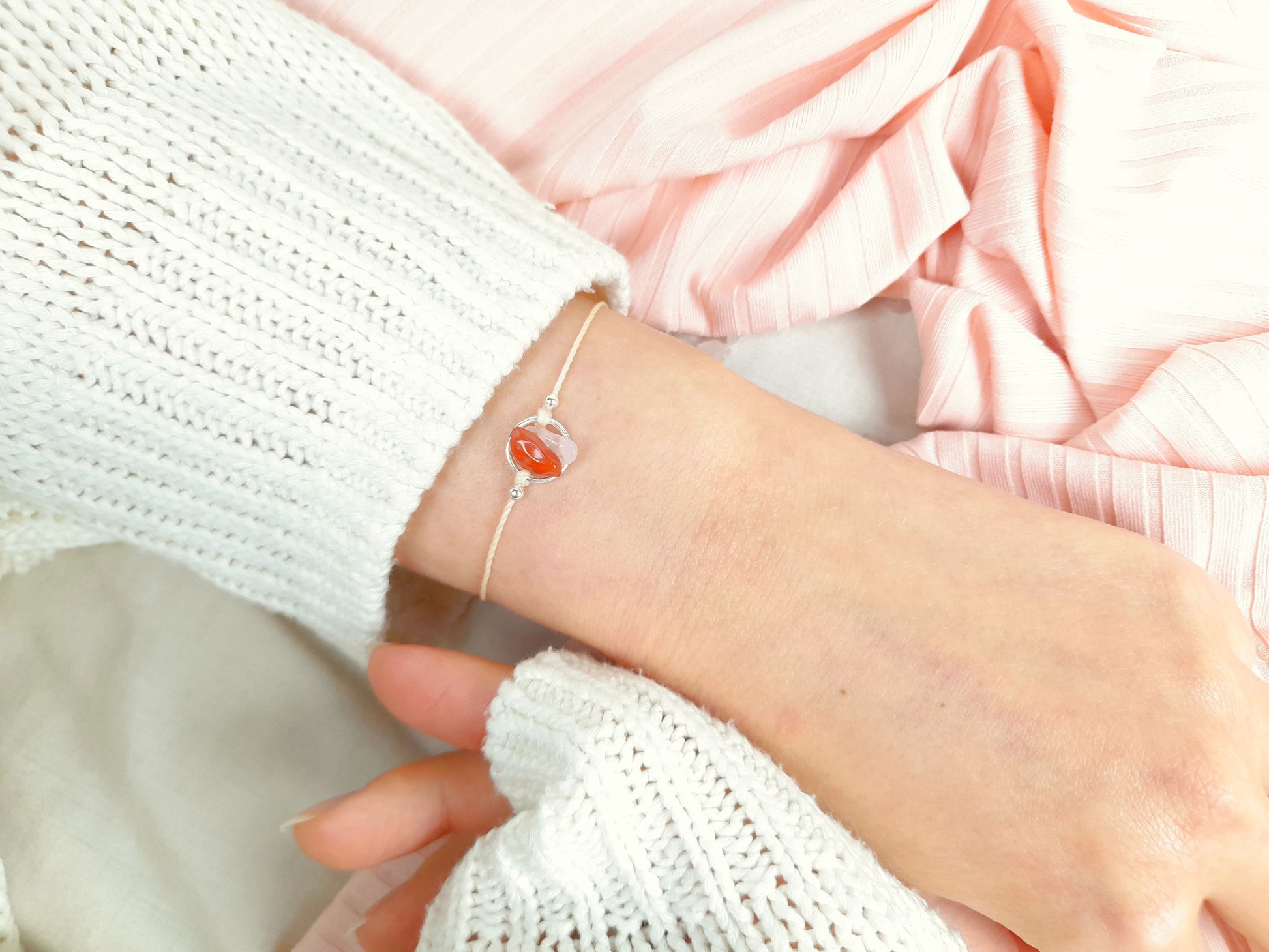 Beautiful CARNELIAN and ROSE QUARTZ Bracelet - Gemstone Bracelet for LOVE and PASSION.